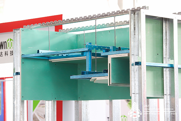 會上,劉總還特別介紹了公司裝配式創新工藝和工法:裝配式免木天花龍骨系統,裝配式墻面瓷磚免砂漿、石材超薄干掛工藝,裝配式地面瓷磚石材純干法施工工藝,裝配式紙面石膏板免批灰工藝,裝配式裝飾一體隔墻系統,強調通過新型建筑工業化,推動行業低碳環保,助跑城市建設高質量發展新格局。